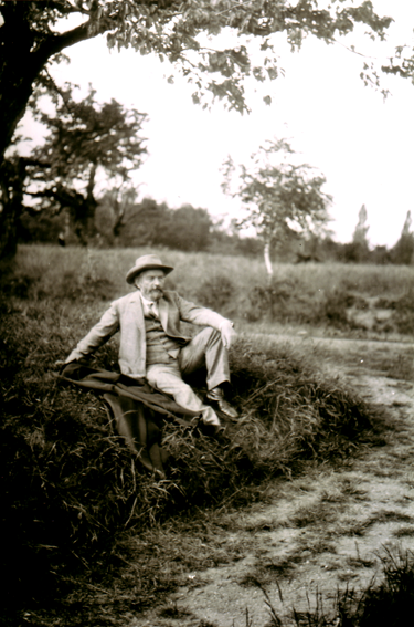 Silvio Gesell im Winter 1929/30 in seinem Haus in Eden-Oranienburg (Foto 1)